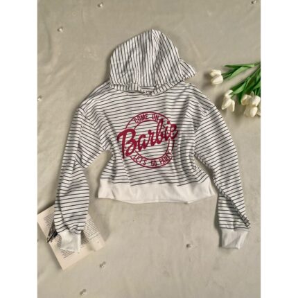 بلوزة خريفية مع طاقية مخططة لون أسود