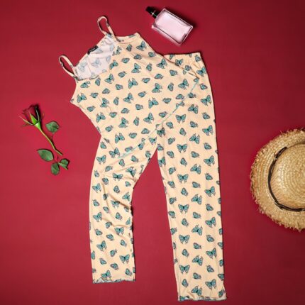 بجامة صيفية للنساء لون أصفر بتصميم فراشات
