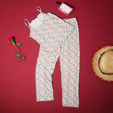 بجامة صيفية للنساء لون زهري بتصميم زخارف