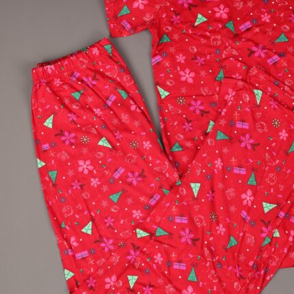 بجامة ستاتي مورد مكونه من قطعتين بنطلون وتيشيرت قطني لون أحمر