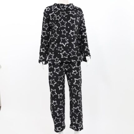 بيجامة صوف للنساء لون أسود بتصميم نجوم
