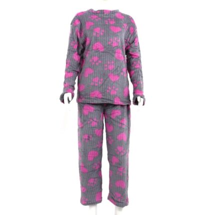 بيجامة صوف للنساء لون سكني بتصميم آثار أقدام