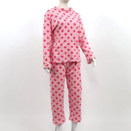 بيجامة صوف للنساء لون زهري فاتح بتصميم دوائر