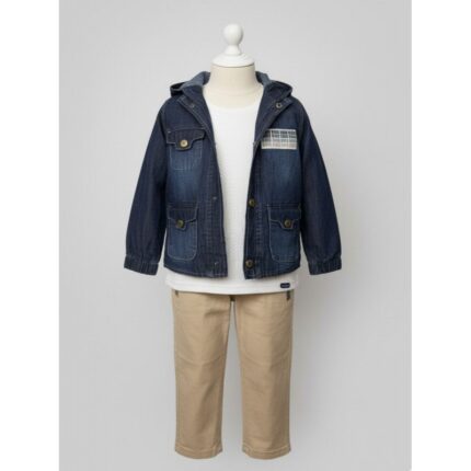 طقم ولادي جاكيت جينز وبنطلون لون عسلي