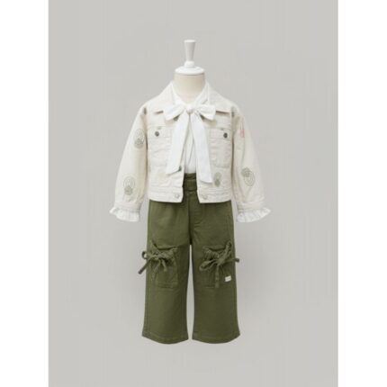 طقم بناتي جاكيت وبنطلون لون ابيض