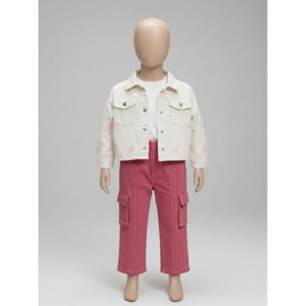 طقم بناتي جاكيت وبنطلون لون بيج وفوشي