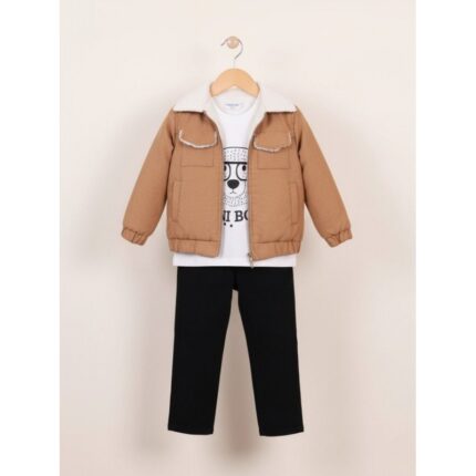 طقم ولادي جاكيت وبنطلون لون عسلي