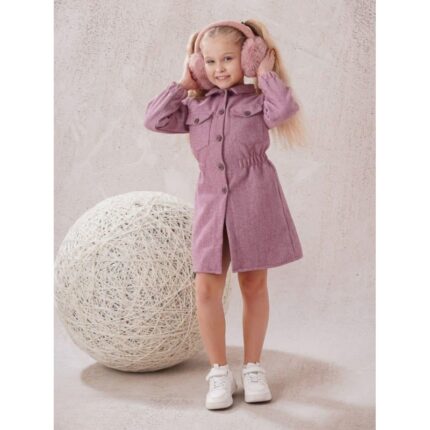 جاكيت ولادي بأزرار وأكمام طويلة لون سكني