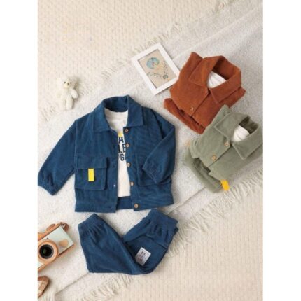 جاكيت ولادي بأزرار وأكمام طويلة لون أخضر