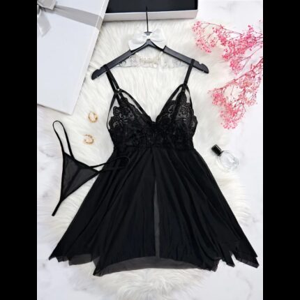 بجامة لانجري ثلاث قطع مع روب لون أحمر
