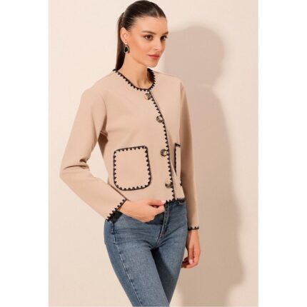 جاكيت ستاتي لون بيج نقشة أسود من الجوانب