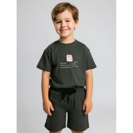 طقم ولادي قطعتين شورت وبلوزه لون زيتي