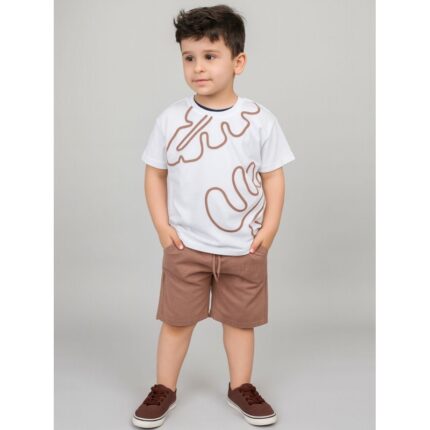 طقم ولادي قطعتين شورت وتيشيريت لون بني