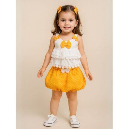 فستان بناتي أصفر وأبيض