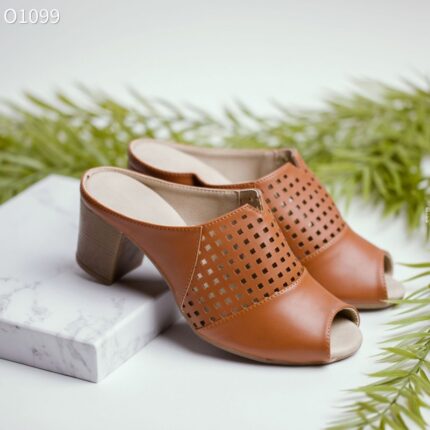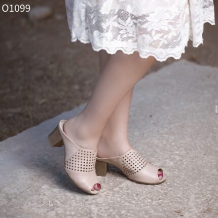 حذاء كاجوال برباط مع كعب للنساء لون بيج