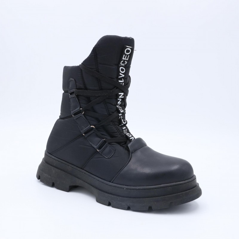 جزمة بتصميم ساق متوسط الطول للنساء لون أسود