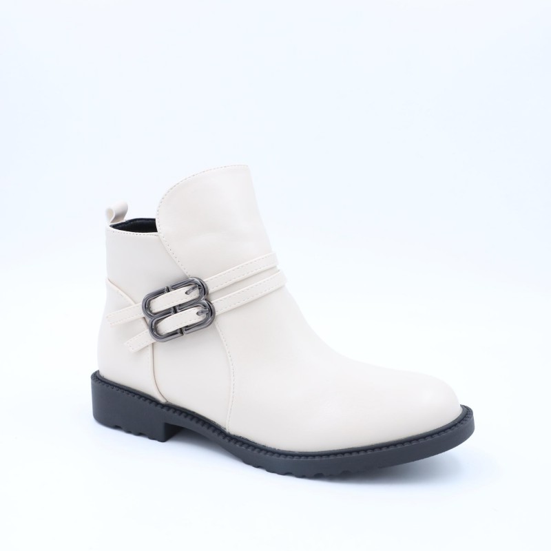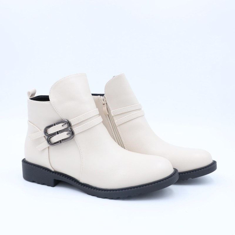 جزمة بسحاب تصميم ساق متوسط الطول للنساء لون أوف وايت
