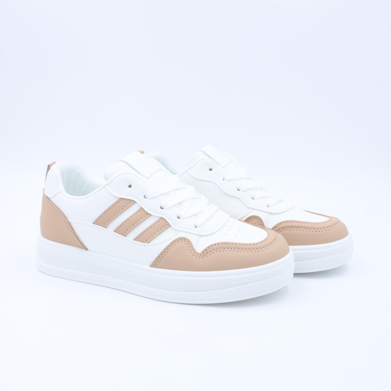 حذاء رياضي كلاسيك جلد للنساء لون أبيض وكاكي