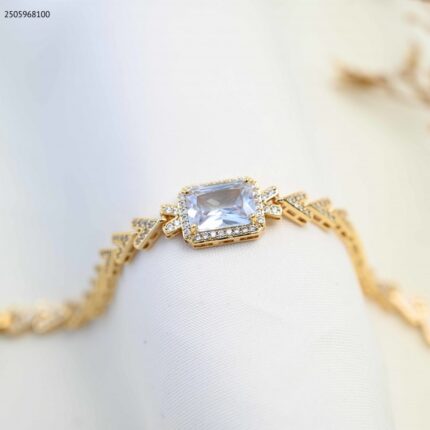 سوار مع زركون أبيض مستطيل لون ذهبي