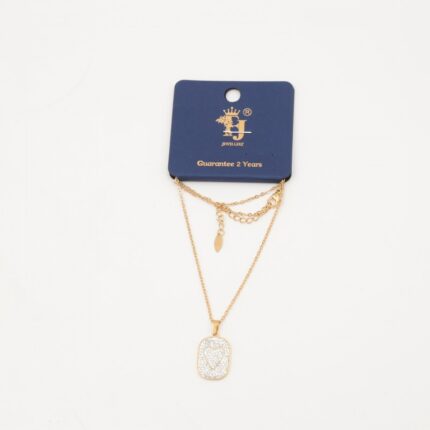 سلسال طبقتين مع خرز أبيض لون ذهبي