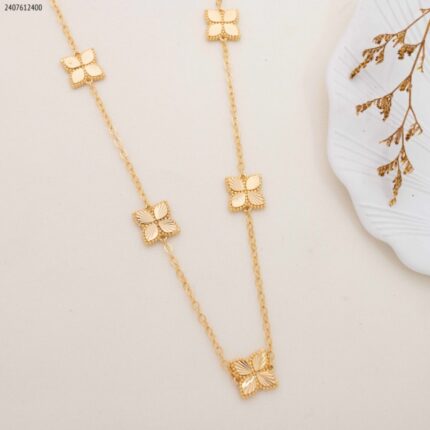 سلسال طويل بتصميم وردات مربعة لون ذهبي