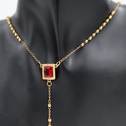 سلسال ذهبي بتصميم زركون أحمر مستطيل