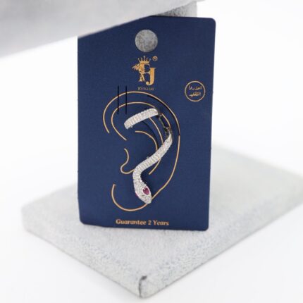 حلق مفرد فضي بتصميم أفعى زركون أبيض وأحمر