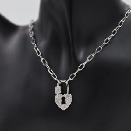 سلسال فضي بتصميم جنزير وقلب على شكل قفل