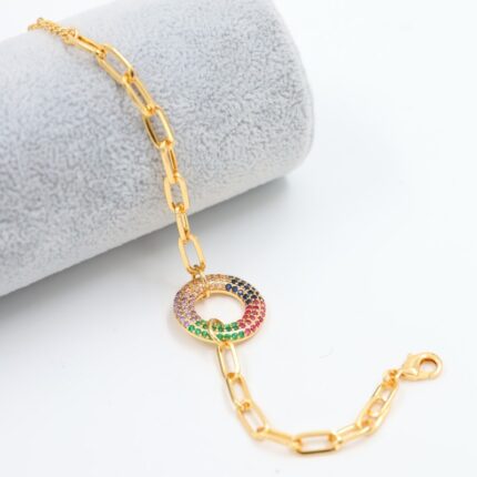 سوار ذهبي بتصميم جنزير ودائرة زركون ملون