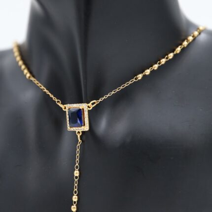 سلسال ذهبي بتصميم زركون مستطيل كحلي