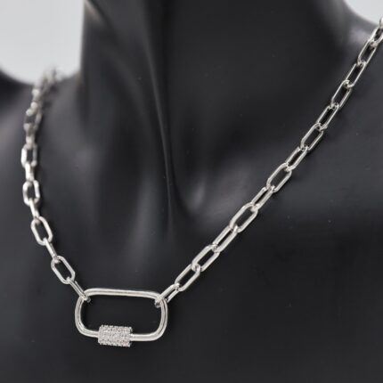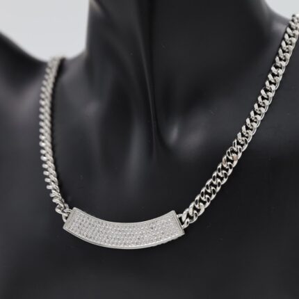سلسال فضي بتصميم جنزير وزركون أبيض