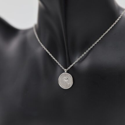 سلسال فضي بتصميم دائرة بداخلها وردة