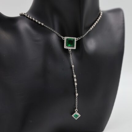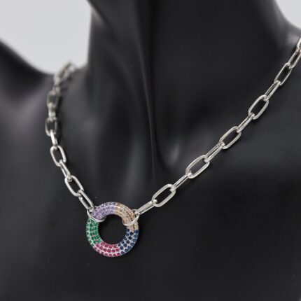 سلسال فضي بتصميم جنزير ودائرة مع زركون ملون