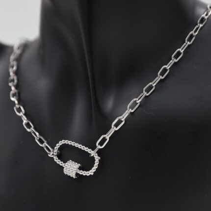 سلسال فضي بتصميم جنزير على شكل بيضاوي
