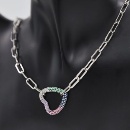 سلسال فضي بتصميم جنزير وقلب