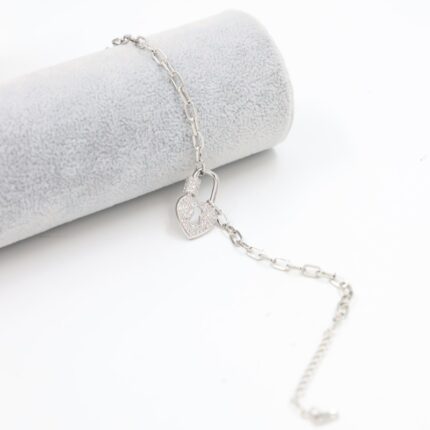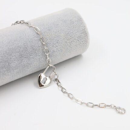 سوار فضي بتصميم قفل على شكل قلب مع زركون أبيض