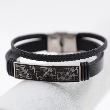 سوار جلد طبقتين لون أسود