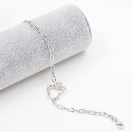 سوار فضي بتصميم جنزير مع قلب