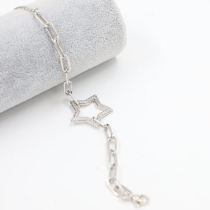 سوار فضي بتصميم جنزير ونجمة مع زركون أبيض