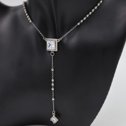 سلسال فضي بتصميم مربع زركون أبيض
