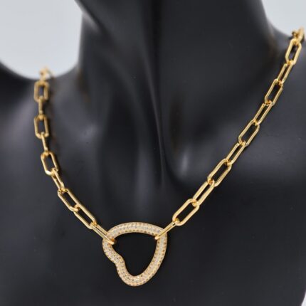 سلسال ذهبي بتصميم جنزير وقفل على شكل قلب