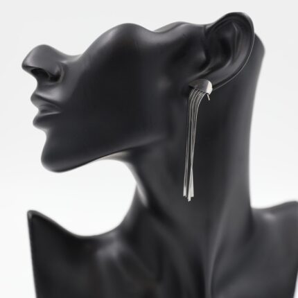 حلق فضي بتصميم نصف دائرة مع شراشيب
