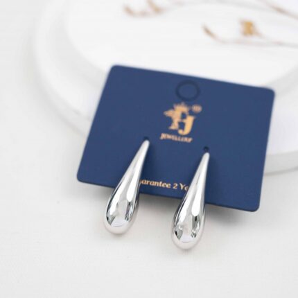 حلق فضي بتصميم قطرة ماء حجم كبير