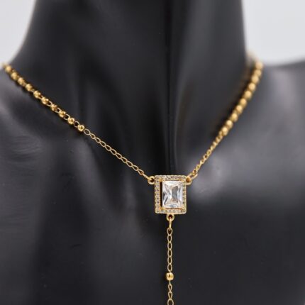 سلسال ذهبي بتصميم زركون أبيض على شكل مستطيل