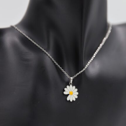 سلسال فضي بتصميم ندفة ثلج مع إطار مع زركون أبيض