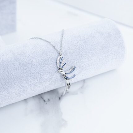 سلسال فضي بتصميم طائر زركون أزرق