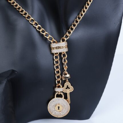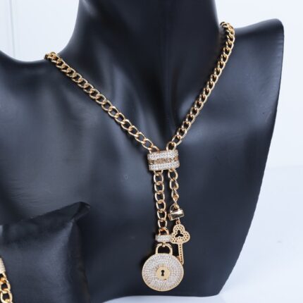 طقم اكسسوارات 3 قطع لون ذهبي بتصميم قفل ومفتاح حجم 7