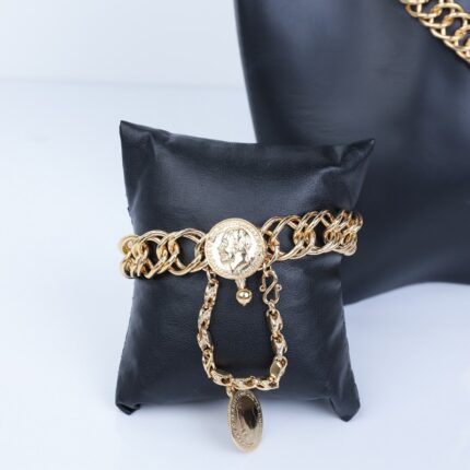 طقم اكسسورارت 4 قطع بتصميم جنزير وليرات لون ذهبي