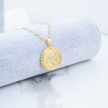 سلسال ذهبي بتصميم ليرة بإطار طابات
