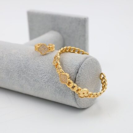 سوار مع خاتم زركون وسط لون ذهبي كفالة سنتين ضد تغير اللون